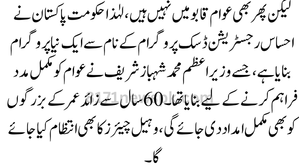 But still, the people are not under control, so the government of Pakistan has created a new program called the Ehsaas Registration Disk Program, which was created by Prime Minister Muhammad Shahbaz Sharif to provide full assistance to the people. Full assistance will also be given to elderly people above 60 years of age, wheelchairs will also be arranged.